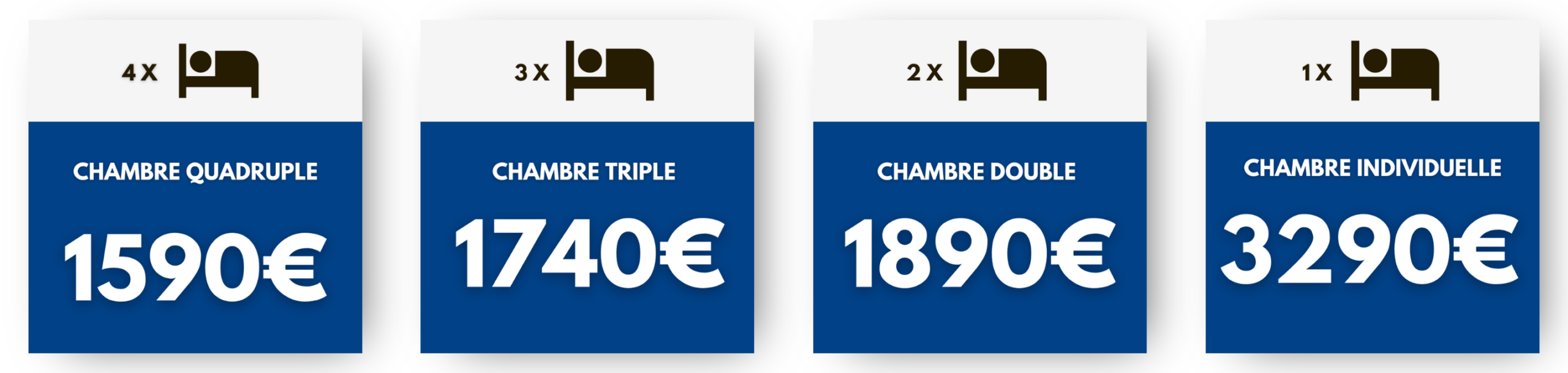• Assurance de voyages (voir les détails) : à partir de 90€ (par personne)